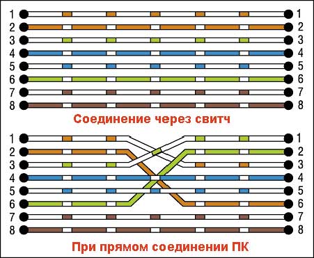 — как должен быть обжат кабель Ethernet при соединении двух компьютеров на прямую?